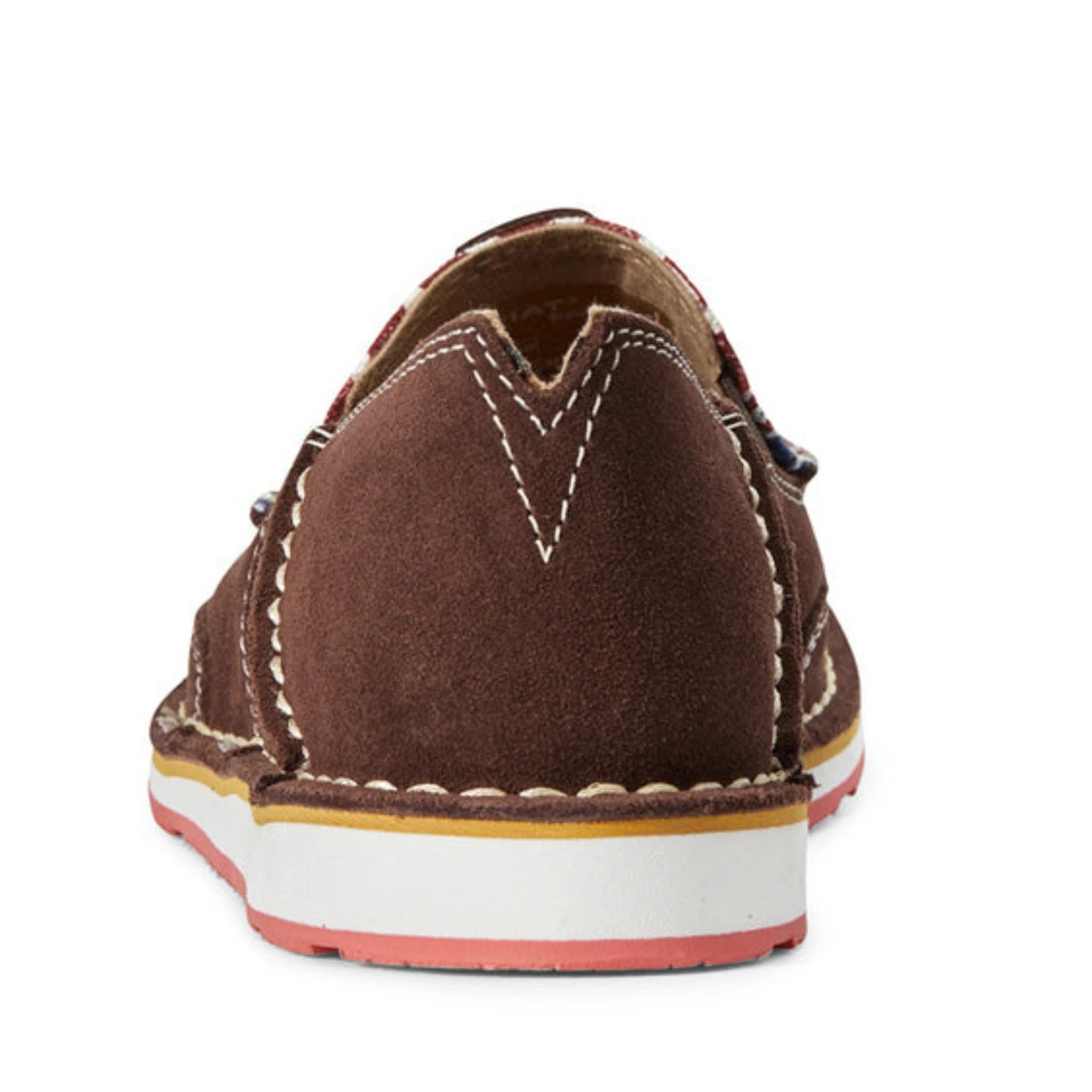 These women’s Ariat cruisers feature a brown suede outer with a burgundy Aztec design on the toe! Cruisers are so comfy; you can wear these shoes all day long!