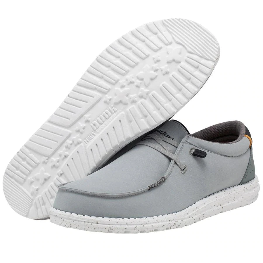 These Wally Advanced Pebble Stone by Heydude are sheer style with great comfort. Classic moccasin construction in performance materials. This travel-ready stretch nylon upper repels water and is flexible enough to fold for packing. Reinforced heel for stability. Antibacterial DryMesh lining and insole to keep things fresh. Featuring our thoughtfully designed Easy-On System with no-tie elastic laces and our patented UltraLIGHT EVA outsole.