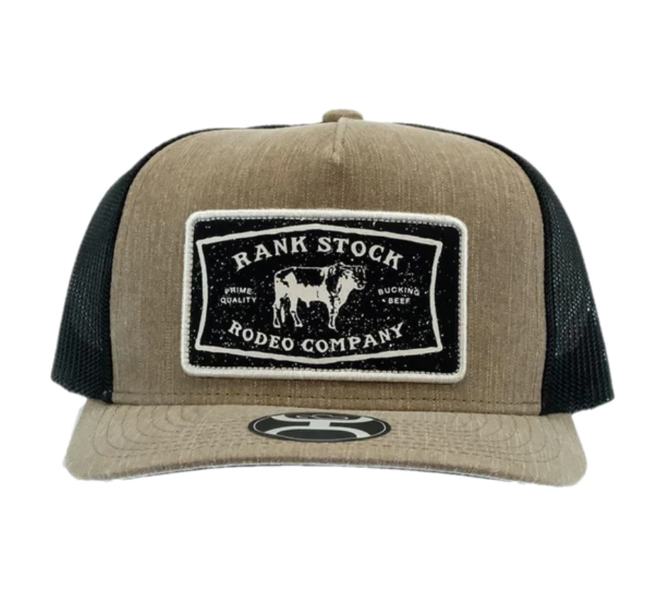 Hooey rust stock tank is a curved hybrid bill with 8 stitching detailing.