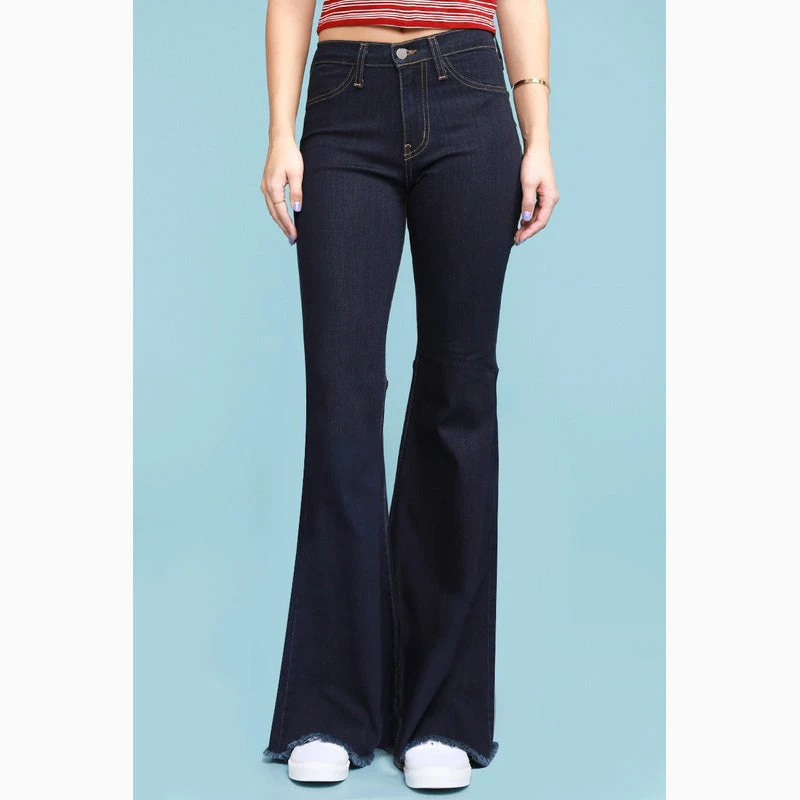 We’re in love with these Judy Blue jeans! The leg opening has a super flare opening with some rugged fringe! The back pockets are bare of detail, great for riding!