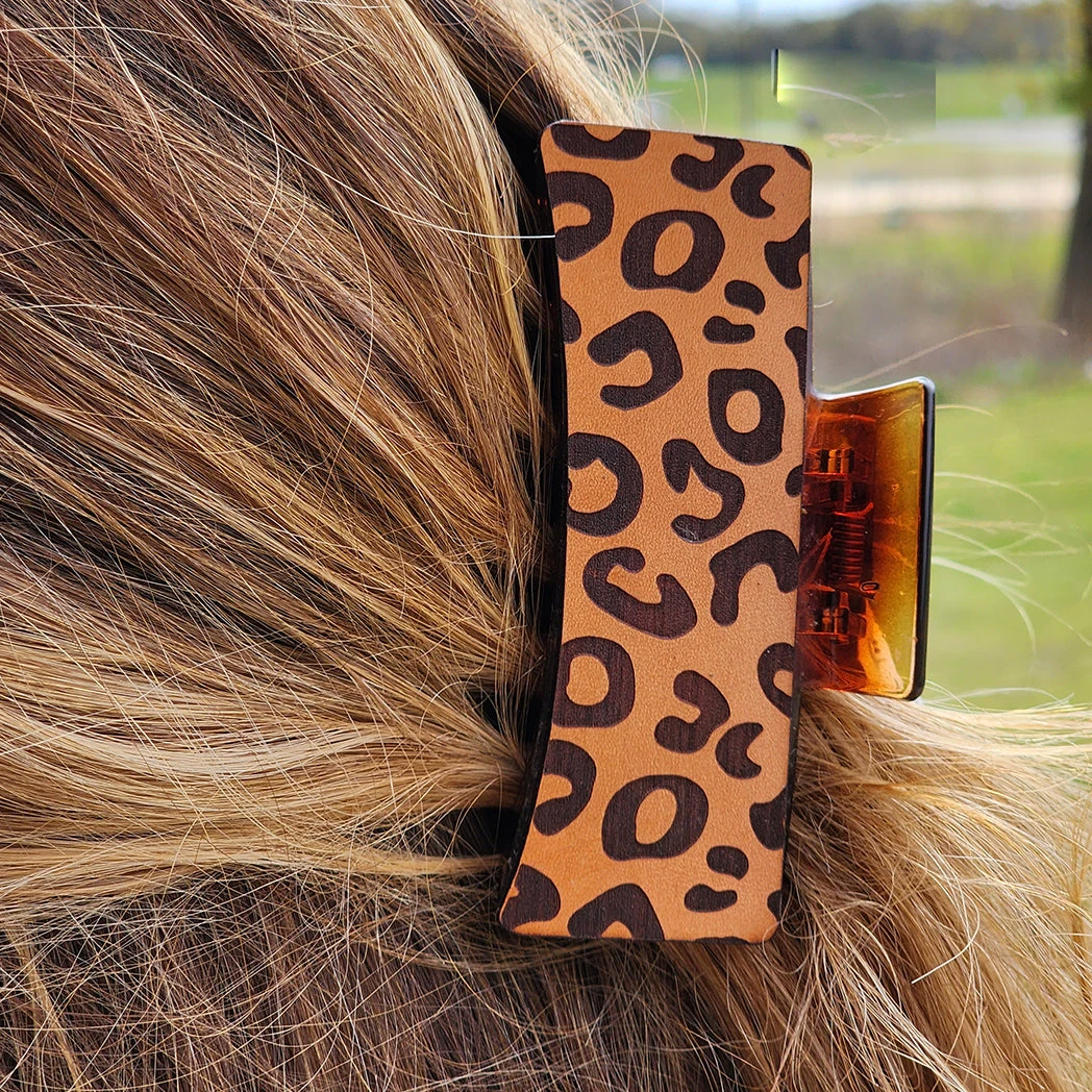 We just love these fun hair clips with leopard leather on them. Put your hair up in style with this great hair clip.
