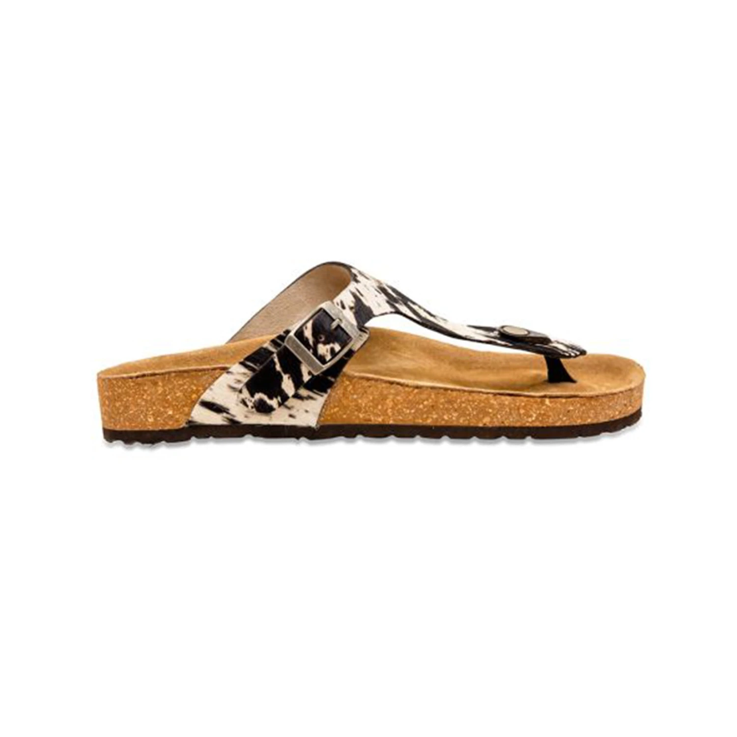 These hide sandals will go with any outfit. They are hand tooled and feature a side buckle and arch support.