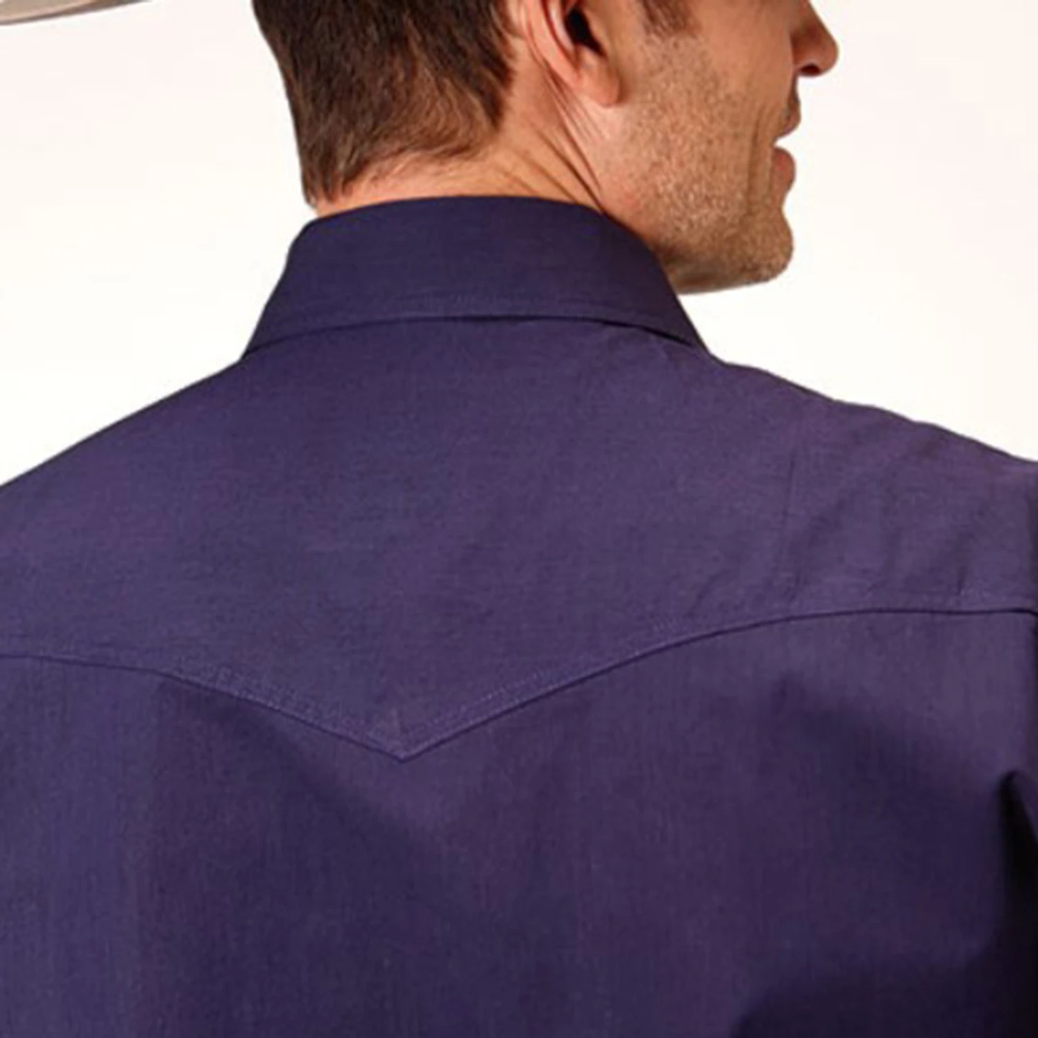 This is a classic looking solid purple pearl snap shirt by Roper. Comfortable and cool to wear for any occasion.