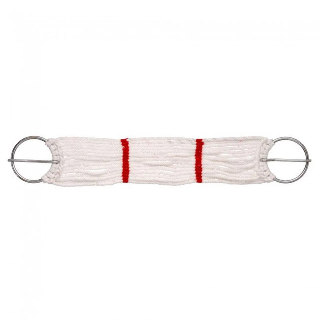 This is a traditional 13 strand acrylic cord with heavy plated tongue ring. The white color is accented with red.