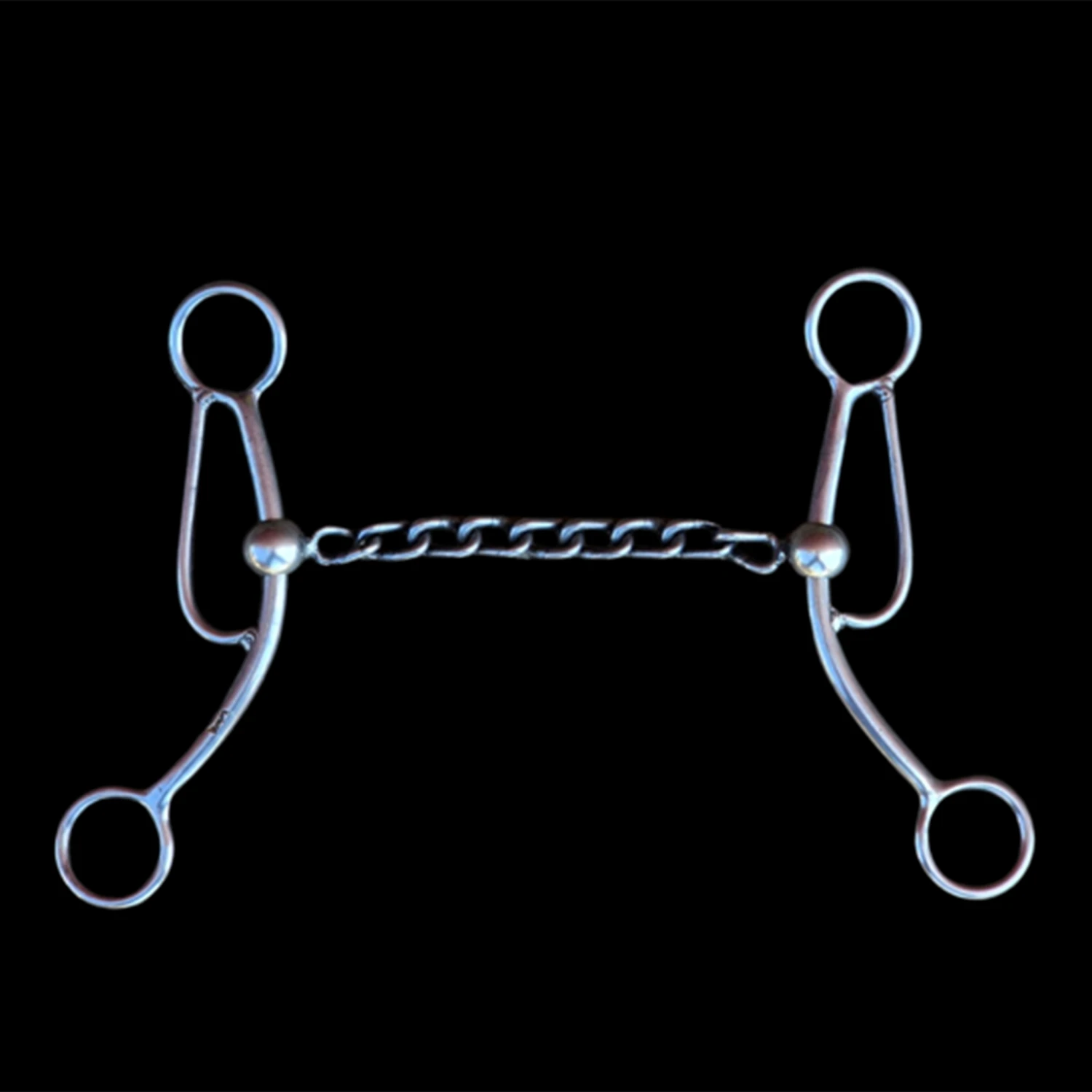 The Patty Shank from the Troy Flaharty Bit Collection has the same cheek as the Marne; however it offers a longer gag that allows a slower reaction than the Marne. This bit will have a quicker reaction than the Betty or Linda shank. This particular bit features a chain mouthpiece.