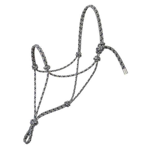 This rope halter from Weaver Leather has grey, silver, and navy colors braided together. This halter is preferred by many horse trainers and trail riders!