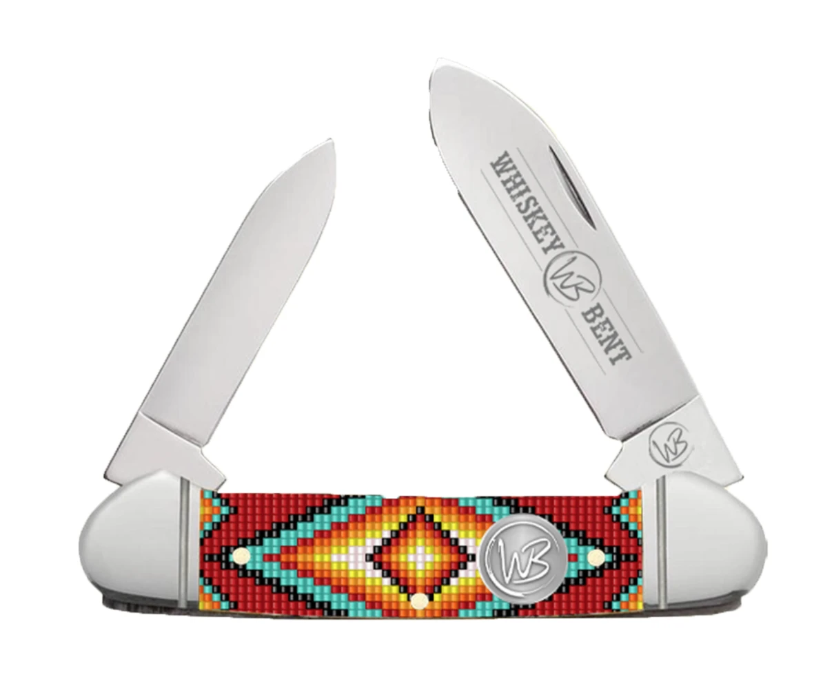The Warrior Canoe from Whiskey Bent Knives is a traditional pocket with acrylic handle. This is a Symmetrical 2 bladed knife with a spear blade and pen blade. Both blades are made with 440 Steel.
